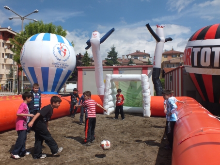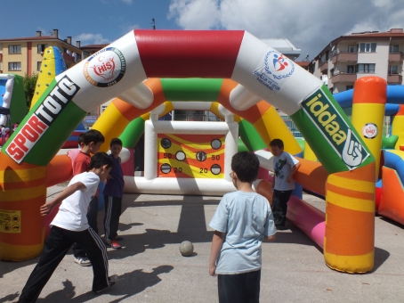 Türkiye Herkes İçin Spor Federasyonu ve Gençlik Hizmetleri ve Spor İl Müdürlüğü katkılarıyla düzenlenen etkinlikte öncelikli olarak 17 Temmuz Spor Salonu’nda çocukların yetenek seviyeleri ölçüldü. Ölçümlerin ardından çocukların daha eğlenceli bir etkinlik geçirmeleri için Olimpiyat Gençlik Evi’nin bahçesine kurulan stantlara geçildi. Bu stantlarda çocuklar birbirinden eğlenceli aktivitelerle hoşça vakit geçirdiler. Kum voleybolu, kum futbolu, kum basketbolu, halka, tırmanma, kaydırak gibi dallarda hünerlerini sergilemenin mutluluğunu yaşadılar. Bugün de sürecek olan projeyle, spor kültürünü yaygınlaştırmak için Aile ve Sosyal Politikalar İl Müdürlüğü’ne bağlı kuruluşlardaki korunmaya muhtaç çocukların spor ile topluna kazandırılması hedefleniyor. Bu bağlamda çocukların yetenek taraması ve yönlendirme sürecinin takip edildiği uygulamalara il genelindeki tüm öğrencilerin de katılabileceği ifade edildi. Organizasyonun ilk gününde BoluVali Yardımcısı Ayhan Kartlı ve Bolu Belediye Başkanı Alaaddin Yılmaz çocuklarla beraber vakit geçirerek Bolu Gençlik Hizmetleri ve Spor İl Müdürü Suat Çelen ve proje koordinatöründen bilgi aldılar. Organizasyon, bugün de saat 10:30'dan 18:00'e kadar devam edecek olup 7-17 yaş arası tüm çocuklar eğlenmeye davet edildi.