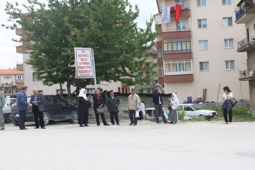 Cici Taksi, Hisar Taksi önü ile ve Sanayi kavşaklarında yolcu indirip bindirmek yasaklanmıştı. Bolu Belediyesi de, İl Trafik Komisyonu Kararı doğrultusunda bu noktalara “Yol Boyunca Yolcu İndirmek, Bindirmek Yasaktır” yazılı tabelalar dikti. Ancak vatandaşın bu noktalardan başka yerde otobüs beklememesi sürücülerinde elini kolunu bağlıyor. Tam da tabelanın altında otobüs bekleyen vatandaşlar, objektiflerimize böyle yansıdı…