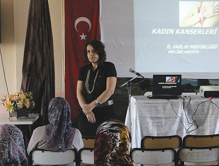 Geçtiğimiz günlerde düzenlenen etkinlik bayanların yoğun katılımıyla gerçekleşirken, toplantıya konuşmacı olarak Sağlık Müdürlüğü Eğitim Şubesi il eğitimcilerinden Melike Akkaya katıldı.