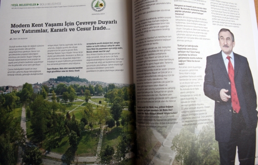 Belediye Başkanı Alaaddin Yılmaz’la çevre yatırımları ve çevre eğitim projeleri hakkında yapılan dört sayfa röportajın yer aldığı derginin ekinde ise Bolu Belediyesi’nin çevre yatırım projelerini içeren bir CD ve 20 adet Akasya ağacı tohumu verildi.