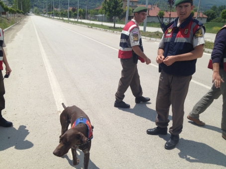 Türkiye’nin çeşitli bölgelerinde terör olaylarının son zamanlarda artış göstermesi emniyet ve jandarma ekiplerini harekete geçirdi. Bolu’nun Karacasu beldesinde jandarma ekipleri tam donanımlı trafik denetlemesi yaptı. Beldeden şehir merkezine girişi sağlayan ana yolda uygulama yapan jandarma ekipleri, trafikteki tüm araçları durdurarak inceleme yaptı. Sürücülerin ve araçların incelendiği uygulamaya kaçakçılık olayları da göz önünde bulundurularak narkotik köpekleri de katıldı. Eğitimli köpekler, araçların etrafını koklayarak jandarmalarla birlikte arama yaptı.