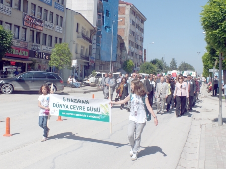 Dünya Çevre Günü etkinliklerinin startı dün Anıtpark’ta verildi. Anıtpark’taki tören saat 10.00’da başladı. Anıtpark’taki çelenk koyma törenine Bolu Vali Yardımcısı Ayhan Kartlı, Bolu Belediye Başkanı Alaaddin Yılmaz, İl Sağlık Müdürü Mahmut Arık, CHP İl Başkanı Fügen Kara, CHP Merkez İlçe Başkanı Faruk İyigün, MHP İl Başkanı Mustafa Ramazan, sivil toplum kuruluşlarının temsilcileri ve öğrenciler yer aldı. Törende Belediye Başkanı Alaaddin Yılmaz, Erozyonu Önleme Derneği, Bolu Çevre Derneği, TEMA Vakfı ve Çevre Şehircilik İl Müdürlüğü tarafından Atatürk Anıtı’na çelenkler konuldu. Çelenk Koyma Töreni’nin ardından gerçekleşen Saygı Duruşu ve okunan İstiklal Marşı ile Anıtpark’taki tören tamamlandı. Bu törenden sonra Bolu Belediye Meydanı’na kadar süren yürüyüşe geçildi. Belediye Bandosu eşliğinde gerçekleştirilen Doğaya Saygı Yürüşü ile etkinliğin ilk bölümü tamamlanmış oldu.