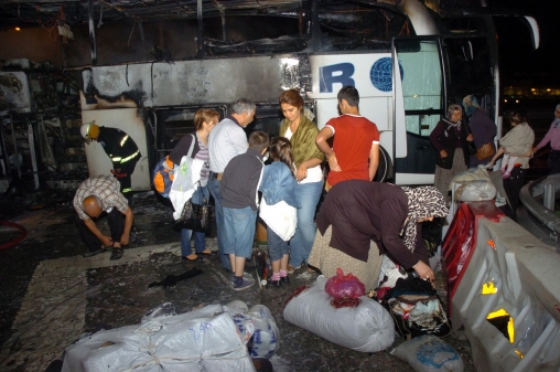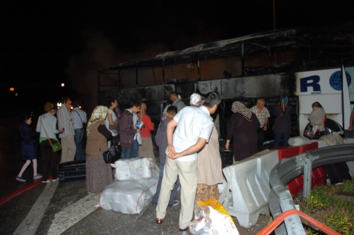 Yangının motor kısmından başladığını söyleyen yolcular, "Otobüsün içini koku sardı. Şoför otobüsün yandığını anlayınca kenara çekti. Biz de zar zor kendimizi dışarı atarak canımızı kurtardık" dediler.