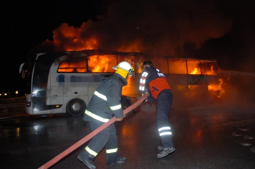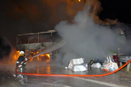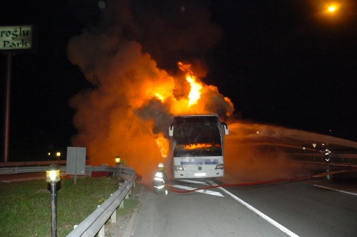 İstanbul'dan Ankara yönüne giden Osman Karalar yönetimindeki 40 LD 733 plakalı yolcu otobüsü TEM'in Köroğlu Park Mevki'nde saat 03.00 sıralarında gelirken aracın motor bölümünden alevler çıktı. Sürücü otobüsü yol kenarına çekip, yolcuları en kısa sürede araçtan inmeleri için uyardı. İçeride bulunan 55 yolcu panikle dışarı çıkarken, alevler tüm otobüsü sardı. Bolu Belediyesi İtfaiye Müdürlüğü ekiplerinden yardım istenirken, polis, Ankara yönünde trafiği kesti. Kısa sürede gelen itfaiye ekipleri, alev alev yanan otobüse müdahale etti. Bazı yolcular itfaiye erlerine bagaj kısmında bulunan eşyalarının kurtarılmasını istedi. Alevler kısa sürede kontrol altına alınırken, bagajdaki valizler dışarı çıkartıldı. Otobüsün yanına gelen yolcular, kendilerine ait valizleri bulmaya çalıştı. Bazı yolcuların eşyaları yanarken, bazıları da valizlerini alarak uzaklaştı.