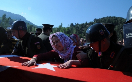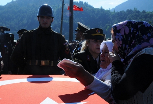 Aynı ambulansta eşiyle birlikte gelen Zübeyde İşbilir, kocasının resmini öpüp gözyaşı döktü. Şehidin naşının tören alanına konmasının ardından şehit annesi Zeynep İşbilir oğlunun tabutuna sarılıp, “boylarına kurban olayım oğlum. Sana nasıl kıydılar” diyerek ağıtlar yaktı. Şehidin ayakta durmakta güçlük çeken acılı annesi ve eşi, kadın askerler tarafından teselli edildi.