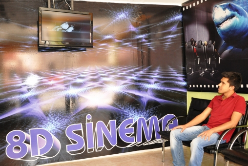 Tabaklar Mahallesi Albay Sokak’ta hizmete açılan 8D Sinema, ilk günden bu yana macera tutkunlarının uğrak mekanı haline geldi. İleri teknoloji ve modern yenilikleriyle sinemaseverlerin hizmetine giren 8D Sineması, macera dolu dakikalar yaşatıyor. Üç boyutlu gözlükleri takarak elektronik koltuklara oturan müşteriler, su, fırtına, tünel, orman, gökyüzü ve daha birçok bölümde çekilmiş filmleri farklı boyutlarda izliyor. Yaklaşık 6 dakika süren filmlerde özel simülatör ve hareketli koltukların yanı sıra su ve fırtına gibi efektler de veriliyor. Özel hazırlanan odaya girerek kendilerini adeta filmin içinde hisseden müşteriler, bir seansa 5 TL ödeyerek macera dolu anlar yaşıyor. En fazla 4 kişinin aynı anda izleyebildiği 8D sinema, yeni açılmasına rağmen şimdiden büyük ilgi görüyor.
