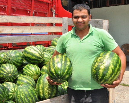 Hava sıcaklıklarının mevsim normalleri üzerinde seyretmesi meyve ve sebze satıcılarının yüzünü güldürdü. Bahar aylarının bol yağışlı geçmesi sonucu erken olgunlaşan meyve ve sebzeler, pazardaki yerini aldı. Bolu’da Sanayi Sitesi’nin yanında bulunan Sebze ve Meyve Hal’inde karpuz satışları tavan yaptı. Adana’dan gelen karpuzlar haldeki işçiler tarafından dükkanlara boşaltılıyor. Toptan satış yapan dükkan sahipleri, havaların sıcak olması sebebiyle sofraların vazgeçilmesi olan karpuz tüketiminin arttığını ifade ettiler. Özellikle sıcak havalarda fazla tüketilen karpuzların kamyonlardan boşaldığı gün tükendiği belirtildi. Halde çalışan işçiler ise karpuz yükleyip indirmekten hiçbir şeye fırsat bulamadıklarını söylediler.
