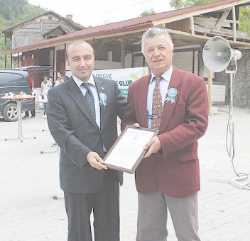 Belediye Başkanı Ahmet Kızıltan'da Köyde tarihi camii ve hamamda yapılan restorasyon çalışmalarında ve diğer yapılan faaliyetlerde Belediye ile koordineli yaptığı çalışmalarla ilçemize bu ödülün kazanılmasını sağlayan Muhtar Ramazan Karaduman'a teşekkür plaketi verdi.