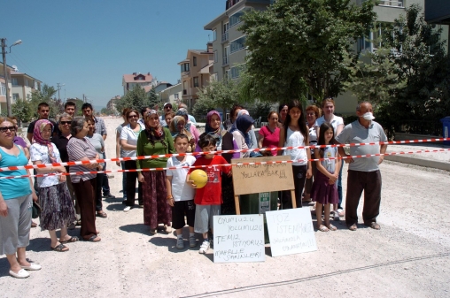Bolu Belediyesi'nin, Beşkavaklar Mahallesi'nde devam eden alt yapı çalışmaları nedeniyle yoldan kalkan tozdan rahatsız olan mahalle sakinleri protestoda bulundu. Beşkavaklar Mahallesi Necdet Gören Caddesi'nde yaşayan vatandaşlar, yolun asfaltlanmamasını ve toz nedeniyle yaşanan hava kirliliğini protesto ederek, şerit çekerek yolu trafiğe kapattı. Yoldan geçen araçların yarattığı toz nedeniyle camlarını ve kapılarını açamadıklarını belirten yaklaşık 40 kişi, 'Kürtajla uğraşma yollara bak', 'Oyumuzu, yolumuzu temiz istiyoruz', 'Toz istemiyoruz sağlığımızla oynamayın' yazılı dövizleri kapattıkları yolun önüne koydu.