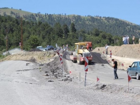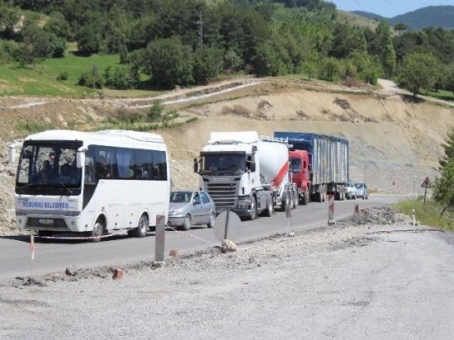 Yolda çalışma yapan müteahhit firma yetkilileri, Mudurnu’yu Bolu’ya bağlayan karayolunun Tepe Karakolu Mevkii’ndeki çalışmaların hızla devam ettiğini ve bundan dolayı yolda seyir halindeki araçların kontrollü seyir ettikleri ifade ediyor.