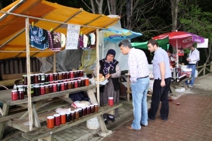 Daha önce kulübelerde satış yapan köylüler şimdi tahta bankların üzerine reçel, bal, tarhana, erişte ve el örmesi eşyaları koyarak satıyor. Türbeyi ziyaret etmeye gelen vatandaşlar, özellikle el yapımı reçellere ilgi gösteriyor. Satışların iyi olduğunu söyleyen köylüler, “Türbeye gelen vatandaşlar yöresel ürünleri sattığımız yere gelip alışveriş yapıyorlar. Satışlarımız özellikle yaz aylarında iyi. Ama kışın düşüş oluyor” dediler.