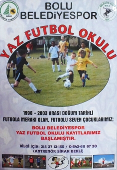Bolu Belediyespor her yıl olduğu gibi bu yıl da Yaz Futbol Okulu açarak öğrencilerin tatillerini daha dolu geçirmelerine katkıda bulunuyor. Bu yıl açılan ve kayıtların devam ettiği Bolu Belediyespor Yaz Futbol Okulu’nda bu dönem 1996-2003 yılları arasında doğan minikler katılabiliyor. Konuyla ilgili olarak gazetemize kısa bir bilgi veren Bolu Belediyespor Antrenörü Sinan Benli, “Futbolu meraklı olan, futbolu seven çocuklarımızı Bolu Belediyespor Yaz Futbol Okulu’na bekliyoruz. Çocuklarımız ya da velileri bilgi ve müracaatlar için 215 13 57 / 155 ya da 0 542 611 67 20 nolu telefonlara ulaşabilirsiniz. Çalışmalarımız Ramazan Bayramı’na kadar devam edecek” dedi.