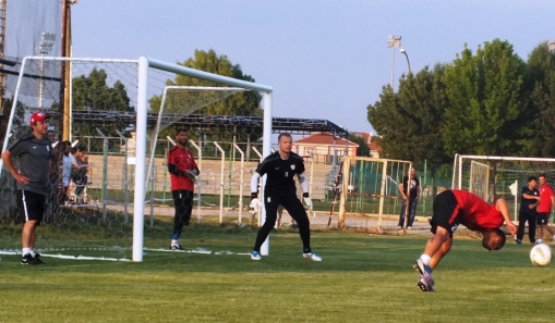 Önceki akşam ki idman düz koşu ile başladı. Topla kısa oyunlarla sürdü. Top çalışmasına katılmayan Savaş Yılmaz ve yeni transfer Ali Güzeldal düz koşu ile çalışmayı tamamladılar. İdman esnasında Teknik Direktör Serhat Güller oyuncularına yaklaşık 45 dk.boyunca kanatlardan gelen toplarla gol çalışması yaptırdı. Bu çalışmada kaleciler de bir hayli zorlanırken, Onur Bektaş’ın kalenin tam tersine doğru yaptığı kafa vuruşu objektifimize takıldı.