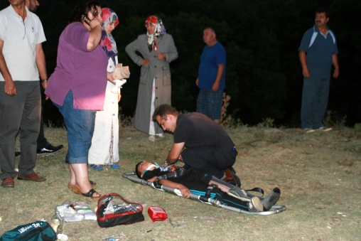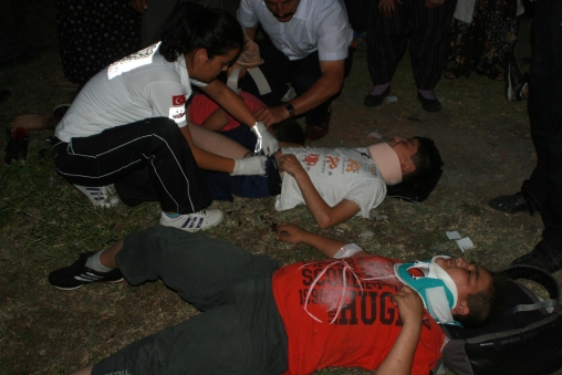 Kazayı öğrenen çocukların aileleri olay yerine akın ederken, otobüsten çıkarılan çocuklara 112 Acil ekipleri ilk müdahalede bulundu. 26 kişi ambulansla kaldırıldıkları İzzet Baysal Devlet Hastanesi'nde tedavi altına alındı.