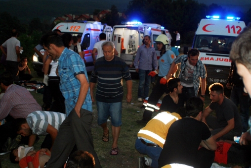 Kaza dün saat 20.30 sıralarında, Gölcük mesire alanı yolu üzerinde meydana geldi. Bolu'da bulunan bir Kuran kursu öğrencileri Gölcük'te piknik düzenledi. Akşam olduğunda öğrenciler evlerine gitmek için pikniğe geldikleri Bolu Belediyesi'ne ait otobüse bindi. Ali Akbalcı idaresindeki 14 AC 472 plakalı otobüs freninin boşalması sonucu karşıdan gelen Mehmet Namdar idaresindeki 14 BB 076 plakalı otomobile ardından da birayerlere çarparak şarampole yuvarlandı. Olay yerinden geçmekte olan İzzet Baysal Devlet Hastanesi Başhekimi Hüseyin İka telefon açarak, "Tüm ambulansları burayı gönderin" diyerek yardım isterken, yaralılara da ilk müdahaleyi yaptı. Olay yerine çok sayıda ambulans sevk edilirken, Bolu Belediyesi İtfaiye Müdürlüğü ekipleri de olay yerine geldi.