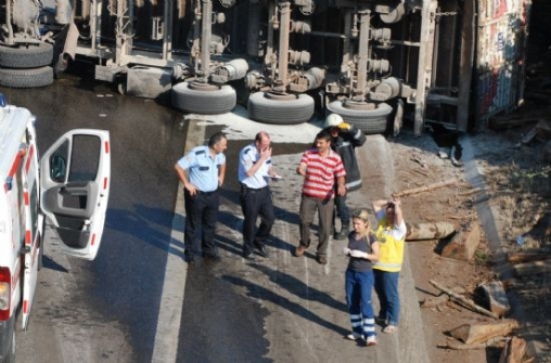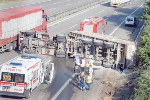 Kaza, Sapanca İlçesi Kırkpınar mevkiinde meydana geldi. Edinilen bilgiye göre; Bolu’dan aldığı tomrukları Gebze’ye götürmek üzere yola çıkan Ayhan Efe idaresindeki 14 AH 940 plakalı TIR, sürücünün direksiyon hakimiyetini kaybetmesi sonrası devrilerek yan yattı. Yan yatan TIR’da bulunan tomruklar otoyola saçıldı. Kaza sonrası TIR sürücü Efe yaralandı. Yaralı sürücü, olay yerine gelen ambulansla Sapanca İlçe Hastanesine sevk edildi.