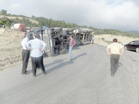 Bolu-Mudurnu Karayolu’nun Tepe Karakolu mevki 35’inci kilometre de meydana gelen trafik kazasında, Bartın’dan Mudurnu ilçesine odun taşıdığı öğrenilen TIR virajı alamayarak devrildi. 74 BP 244 plakalı TIR’ın dorsesinde bulunan odunlar kaza yerinin 50 metre civarına kadar yayıldı. Kaza nedeniyle trafiğe kapanan yoldaki kazaya yoldan geçmekte olan diğer sürücüler müdahale etti. Kaza yapan TIR’dan güçlükle kurtarılan sürücü bir süre kazanın şokunu atlatamadı.