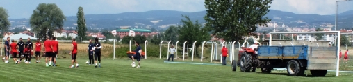 Önceki gün sabah idmanının başlamasına saatler kala sahada yapılmaya başlanan zemin düzeltme ve bakım işlemleri sarkınca ilginç anlar yaşandı. 1 saatlik idmanda sahanın bir bölümünde traktör çalışırken, bir bölümünde de kırmızı-beyazlı futbolcular çalıştı. İdmanı takip eden basın mensupları da bu durum karşısında şaşkınlıklarını gizleyemedi.