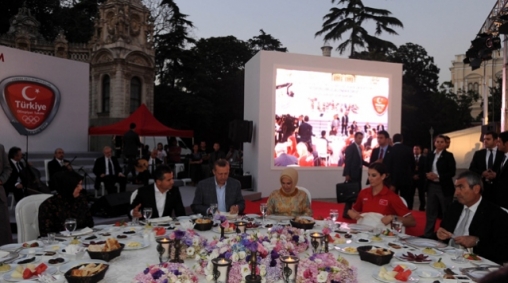 Erdoğan tarafından verilen yemekte Bolulu sporcular Göksu Üçtaş, Çiğdem Özyaman ve Tuğba Palazoğlu da yer aldı. Yemekte konuşan Başbakan Erdoğan, olimpiyat yolcularına 2020 Olimpiyatları aday şehri olan İstanbul için yapılan hazırlıkları anlattı. Başbakan'ın gündeminde spora ve sporcuya yapılan yatırımlar da vardı. Başbakan Erdoğan şöyle konuştu: "Gençlik ve spor faaliyetlerine bütçeden ayrılan payı 9.5 yıl içinde % 7010 arttırdık. Bu denli buna önem veriyoruz. Sporcu sayısını 10 kat arttırdık. Spor kulübü sayısını 6 binden 11.077'ye çıkardık. 28 ilimizde yüzme havuzu yaptık.152 yeni spor tesisi inşa ettik.18 şehre şimdi stadyum kazandırıyoruz. Türkiye olarak olimpiyat oyunlarına tarihi nitelikte bir çıkarma yapıyoruz. Sporun alt yapısı ve spora yaptığımız bir yatırımın sonucu olarak bu yıl olimpiyatlara 181 sporcu ile tarihimizin en yüksek sporcu sayısı ile katılıyoruz. 1936 dana beri ulaşılan en yüksek rakam. 16 farklı branşta en fazla kadın sporcu ile katılıyoruz" Gecenin sonunda bir sürpriz de vardı. Türkiye'nin 2020 yılı için aday şehri olan İstanbul'un olimpiyat logosu ilk defa gösterildi.