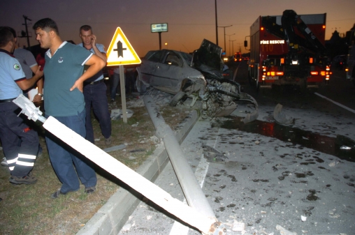 Bolu'da D-100 Karayolu'nda hızla giden otomobil, sürücüsünün direksiyon hâkimiyetini yitirmesi sonucu yoldan çıkarak çarptığı beton aydınlatma direğini parçaladı. Hurdaya dönen araçta sıkışan 4 kişi yoldan geçen vatandaşlar tarafından kurtarılıp hastaneye götürüldü.