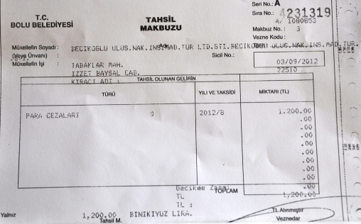 Bolu Belediyesi yetkilileri, Becikoğlu Şirketler Grubu’ndan yapılan bu açıklamanın gerçeği yansıtmadığı ortaya çıktı. İHA muhabirinin ulaştığı evraklarda zabıta ekipleri tarafından kaçak su kullanımı için tutulan tutanakta Becikoğlu Uluslararası Nakliyat İnşaat Madencilik Turizm Ticaret ve Sanayi Ltd. Şti’ne ait kaşesi bulunuyor. 10.08.2012 tarihinde saat 10:20’de tutulan tutanak ana hat girişinden abonesiz su kullanıldığı tespit edilerek şirket yetkililerine tebliğ edildi. Şirket yetkilileri de bu tebliği kabul ederek şirketin resmi kaşesini basarak cezayı kabul ettiler. Ayrıca şirket yetkilileri inkar edilen kaçak su kullanım cezası parası olan bin 200 TL’yi Bolu Belediyesi veznesine yatırdılar.