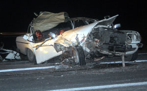 D-100 karayolu Şair Dertli mevkiinde Ankara istikametine giden Nurettin Bayat (41) yönetimindeki 06 RU 992 plakalı otomobil, hatalı sollama sonucu karşı yönden gelen TIR'a çarpmamak için direksiyonu sağa kırınca sollamaya çalıştığı İsmail Yağcı'nın kullandığı 34 LL 303 plakalı kamyona yandan çarptı. Kazada, otomobilde bulunan Fatih Faşirer (32) ile Cezmi Özcan (51) hayatını kaybetti.