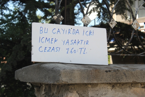 “Bu çayırda içki içmek yasaktır” yazılı tabelada caydırıcı olması için “içki içenlerin 160 TL” ile cezalandırılacağını da yazdıkları uyarı levhasının altına not etmeyi unutmadılar.