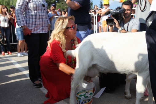 Bolu Belediyesi ve beyaz et üreticisi firmaların desteğiyle bu yıl 6'ncısı düzenlenen Uluslararası Beyaz Et Festivali'ne Safiye Soyman ve Faik Öztürk keçi sağma yarışmasına katıldı. Anıt Park'da düzenlenen etkinliğe Belediye Başkan Yardımcısı Emine Davarcıoğlu ile birlikte gelen Safiye Soyman ve Faik Öztürk, vatandaşları selamladıktan sonra demir barikatlarla çevrili alana girerek keçi sağdı. Safiye Soyman keçiyi tutarken, Faik Öztürk ise keçiden süt sağmaya çalıştı. Daha sonra Safiye Soyman vatandaşların arasından seçilen bir kadın ile süt sağmak için kıyasıya yarıştı. Faik Öztürk keçiyi boynuzlarından tutarken, Safiye Soyman ise süt sağdı. Faik Öztürk, yarışmacı kadının süt dolu kovasını alarak Safiye Soyman'ın kovasına boşalttı. Bunun üzerine Safiye Soyman kahkaha atarak gülüp şarkı söyledi. Yarışmanın sonunda sağılan sütü avucunun içine döken Faik Öztürk, sütle yüzünü yıkadı. Faik Öztürk daha sonra sütü yarışmacıların yüzüne sürdü. Yarışmaya katılanlara çeşitli hediyeler verildi.