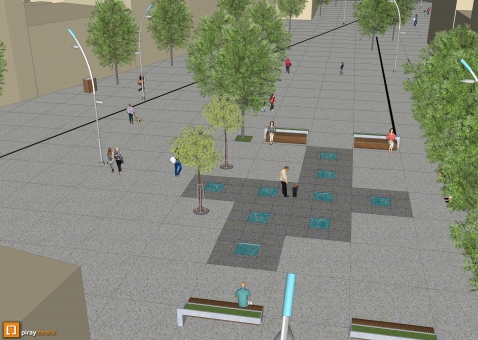 Işık ve su oyunlarının yer alacağı havuzlardan 4’ü bankalar önünde, 3’üde Belediye önünde oluşturulacak.