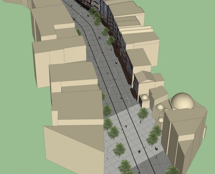 Trafiğe kapatılan ve artık yayalara ayrılan bölgede asfalt alanlar artık yer almayacak. Cadde zemininde baskı beton uygulaması gerçekleştirilecek.