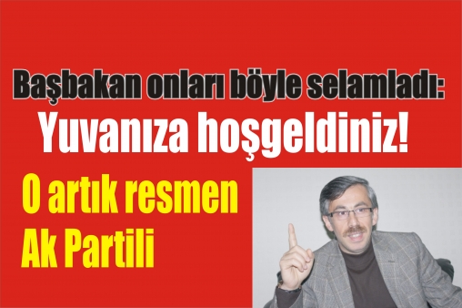 Ak Parti’ye katılan siyasilere “Yuvanıza hoş geldiniz” diyerek selamlayan Başbakan Erdoğan, törende şunları söyledi: "AK parti'nin omuzlarında taşıdığı misyon büyük bir kadim bir medeniyetin ruhu ile şekillenmiştir. Bu hareket bu dava kökü derinlerde olan kökü medeniyetimizle yaşıt olan ilkeleri vizyonu ve bu noktada o misyonu üstlenmiş bir davadır. Biz büyük bir çınarın dallarıyız. Bu çatı herkesi kucaklayabilecek imkana sahiptir. Bu milletin adeta mecnunlarıyız."