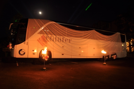 Koktey, lazer gösterileri, Kafkas dansları ve ateş adamın gösterisi ile renklenirken, 1. Yıl için hazırlanan otobüs şeklinde ki pastanın kesiminin ardından gala yemeğine geçildi.