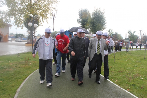 Sağlık Bakanlığının başlattığı obezite ile mücadele kampanyası kapsamında Bolu’da da yürüyüş düzenlendi. Bakanlığın her ilde farklı sloganla başlattığı kampanya, ilimizde de “Hadi galkın yürüyem gari” sloganı ile yapıldı. Karaçayır parkında düzenlenen yürüyüşe Vali İbrahim Özçimen, Belediye Başkanı Alaaddin Yılmaz, Gençlik Spor İl Müdürü Suat Çelen, İl Sağlık Müdürü Mahmut Arık, Emniyet Müdürü Sabri Durmuşlar, İl Özel İdare müdürü Tahsin Akduman’ın yanı sıra Gençlik Spor İl Müdürlüğü sporcuları katıldı. Karaçayır parkında bulunan yürüyüş parkurunda iki tur yürüyen protokol üyeleri yağışlı hava nedeniyle organizasyonu erken bitirmek zorunda kaldı. Vali İbrahim Özçimen, yürüyüş yaptıkları esnada parkta çalışan kadın işçiyi yürüyüşe çağırdı.