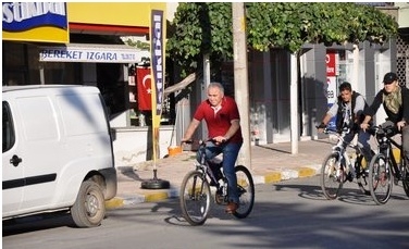Mengen Belediye Başkanı Osman Erarslan bisikletle spora devam ediyor. Caddelerde bisikletle tur atan Erarslan: “Günlük mesainin yoğunluğundan fırsat bulunca bisikletle yaptığım geziler hem spor oluyor hem de hizmet yapılan yerleri gezip vatandaşla sohbet imkanı da buluyorum” dedi ve bisiklet sporunun yaygınlaşmasını istedi.
