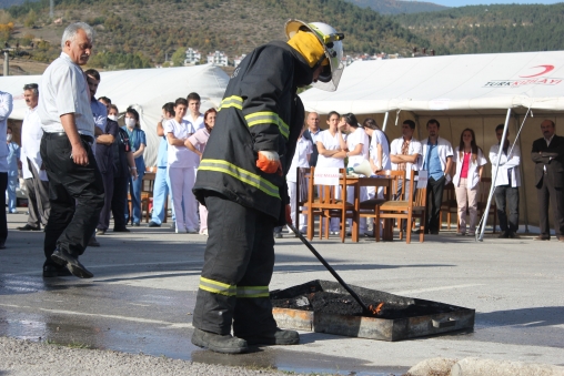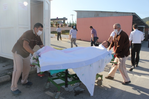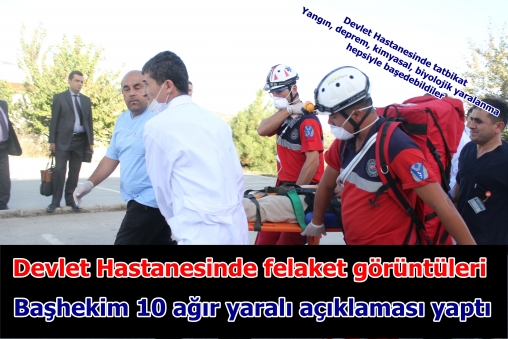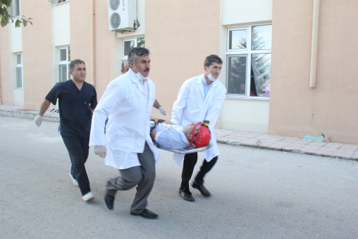 Bolu İzzet Baysal Devlet Hastanesinde bugün (Çarşamba) gerçeğini aratmayan tatbikat sahneleri yaşandı. Yapılan deprem tatbikatında, aynı anda yangın çıkma ihtimali de göz önünde bulundurulurken, dışarıdan önemli vakalar gelebileceği de unutulmadı.