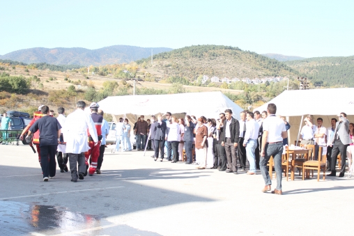 Tatbikat sonrası açıklama yapan Başhekim Hüseyin İka “ Olası bir afet durumunda, olabilecek kurum dışında ki kimyasal ya da biyolojik bir yaralanmada neler yapabileceğini gösterdik. Bize, AFAD’ dan, Umke’ den, İl Sağlık Müdürlüğünden, Kızılay’dan, Bolu İtfaiyesinden yardım eden tüm arkadaşlarımıza teşekkür ediyorum. Böyle bir şey olmasını istemeyiz ama olası bir afet, olası bir felaket durumunda neler yapabileceğini görmüş olduk.” ifadelerine yer verdi.