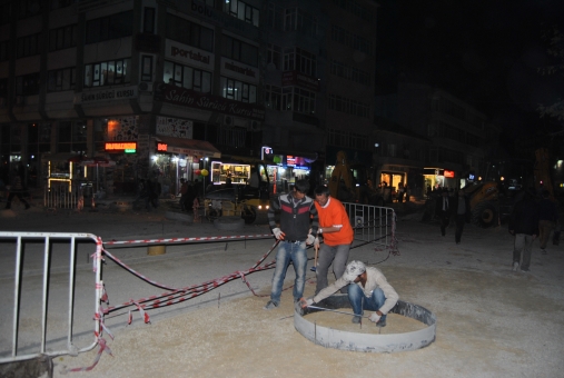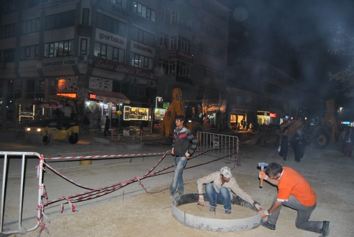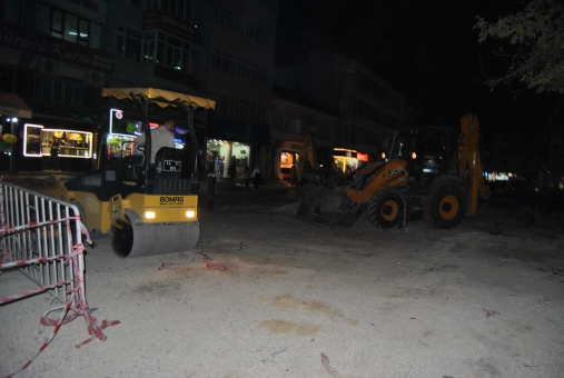 İzzet Baysal Caddesi’nin 300 metrelik bölümünde araç trafiğini kapatan, sonrasında bölgede değişim ve dönüşüm çalışmaları başlatan Bolu Belediyesi, çalışmalara hız verdi. Zemin çalışmalarında önemli mesafe kaydeden ekipler, Belediye’nin kararıyla çalışmalara artık sadece gündüzleri değil, gece yarıları da devam ediyor. Aydınlatma lambalarının altyapı çalışmalarından dolayı kaldırıldığı bölgede iş makinelerinin yoğun bir şekilde çalıştıkları gözlenirken, çalışmaları yılsonuna dek tamamlamayı planlayan Belediye’nin bölgedeki çalışmaları bir an önce tamamlamak üzere böyle bir karar aldığı bildirildi.