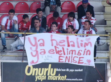 Karşılaşma öncesinde Bolu Atatürk Stadyumu’nun Maraton Tribünü’nde yerini alan bir Bolusporlu taraftar tribünlere sevgisini anlatan bir pankart yerleştirdi. Kimliğini açıklamayan taraftarın astığı pankartta, “Ya helalim, ya ecelimsin. I Love You Enise” yazıyordu. Pankart mücadelenin en çok konuşulan konularından biri olmayı başardı