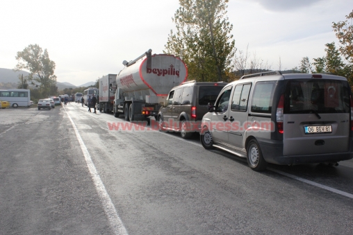 Kaza nedeniyle trafiğe kapatılan karayolunda uzun kuyruklar oluşurken, bir süre sonra trafik tekrar açıldı.