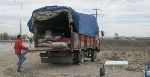 Geçtiğimiz aylarda yeni hasadın yapıldığı patates, bu yıl beklenilen fiyata satılamayınca, üreticiler tarafından D100 Karayolu üzerinde satışa sunulmaya başlanmıştı. Şehirlerarası geçişi sağlayan karayolunda, ürünlerini satmaya çalışan çiftçilere bugün (6 Kasım 2012) kötü bir haber geldi. Patates satıcıları, can güvenliği ve kazaya sebebiyet verebilecekleri gerekçesiyle alınan kararla, Karayolları ve zabıta ekiplerince bulundukları yerden kaldırıldılar.