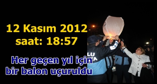 Deprem günlerinde çekilen fotoğraflar ve çıkan haberlerden oluşan slayt gösterisinin sunulduğu tören sonrası, Kültür merkezi önünde her geçen yıl için bir adet olmak üzere gökyüzüne balon uçuruldu. Kızılay Bolu Şubesi görevlileri davetlilere sıcak çorba ikram etti.