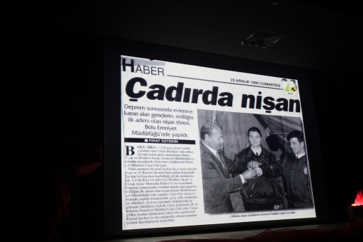 Törende bir konuşma yapan Başkan Yılmaz, “Geçirmiş olduğumuz deprem küçük değildi. O günler mahşer günleri gibiydi. Ben birinci depremde evimden çıkmadım. Hazırlanıyordum ve bir yere gidecektim. Bir ara balkona çıktım ve o sırada ikinci deprem oldu. Gürültü sanırım kiremitlerin gürültüsüydü. O depremden sonra hiçbir yere gidemedim. O zamanlarda imkânları olanlar için sıkıntı yoktu. Ama imkanı olmayanlar sıkıntı çekti. Arabama bindim, benzin yok. Birkaç benzinliğe gittim, parasız vermediler. Cebimde para da yok. En sonunda işadamı Adnan Daylan' ın benzinliğine gittim ve arabamın deposunu doldurdular. O zaman rahatladım” diye konuştu.