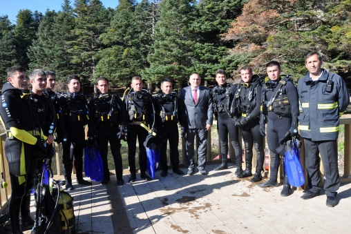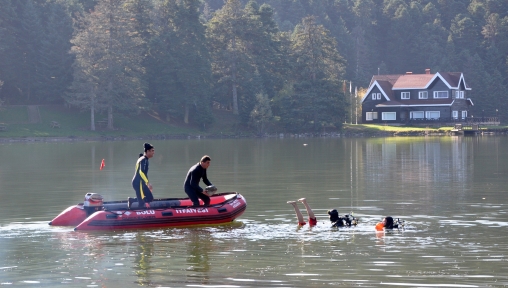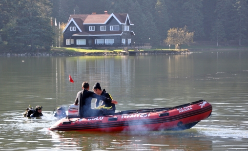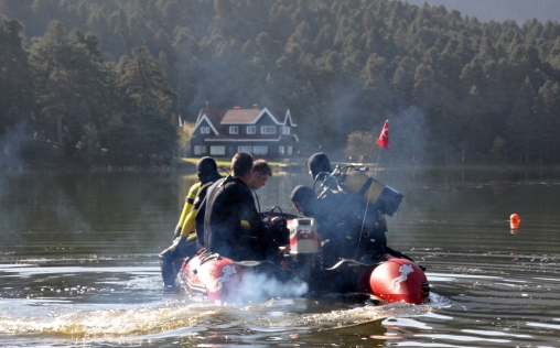 İtfaiye Müdürlüğü’ne Su Altı Arama Kurtarma Timi’ne bağlı 10 kişilik ekip, kent merkezine 15 kilometre uzaklıkta bulunan çam ağaçları arasındaki doğa harikası Gölcük Tabiat Parkı’na giderek arama kurtarma tatbikatı gerçekleştirdi. Bolu Belediye Başkanı Alaaddin Yılmaz ve İtfaiye Müdürü Musa Karadoğan’ın da izlediği tatbikatta, gölde yaşanabilecek talihsiz bir olay sonrası yapılması gerekenler anlatıldı. Arama botuna binerek gölün ortasına kadar ilerleyen dalgıçlar suya dalarak arama yaptı.