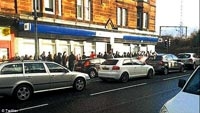 Bölgede yaşayanlar ATM'deki bu teknik sorunu Twitter mesajlarıyla dile getirince bankanın önü bir anda ana baba gününe döndü. Bölge polisi olaydan haber alır almaz Bank of Scotland'ın Rutherglen'deki ATM'sinin olduğu yere geldi. ATM'deki sorun hızlıca giderildi ancak güvenlik görevlileri makine tamamen kapatılana kadar nöbet tutmaya devam etti.