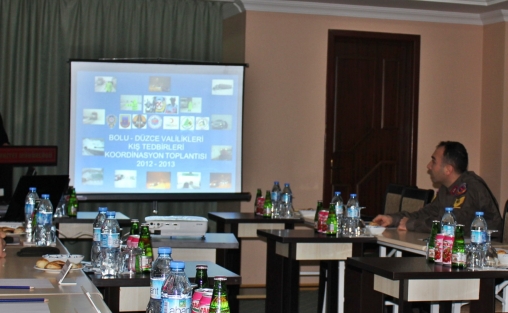 Toplantıda, 2012/2013 kış mevsiminin başlaması ile birlikte oluşacak yağmur, tipi, kar yağışı, sis ve buzlanma gibi karayolu üzerinde trafiği olumsuz yönde etkileyecek durumların etkilerini azaltmak ve ortadan kaldırmak, vatandaşların can ve mal güvenliğinin korunması ile huzur ve güven içerisinde seyahat edebilmelerini sağlamak amacıyla alınacak tedbirler konuşuldu. Vali Özçimen, mevcut mücadele yöntemlerinin çağın gerisinde kaldığını, tuzlama ya da zincir gibi yöntemlerin asfalt yollara zarar vermesi nedeniyle, beyaz ülkelerde (kar yağışının çok olduğu) yapılan mücadele tekniklerinin araştırılması gerektiğini söyledi.