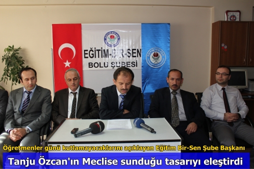 Eğitim Bir-Sen Bolu Şube Başkanı Ahmet Koçak, dün sendika binasında düzenlenen bir basın açıklaması ile üyeleri ile birlikte 24 Kasım Öğretmenler Günü kutlamalarına katılmama kararı aldıklarını açıkladı. Koçak, yaptığı açıklamada “Eğitim Bir-Sen olarak, 23. Başkanlar Kurulu Toplantısında aldığımız ve sonuç bildirgesine de yer verdiğimiz “Öğretmenlik mesleğinin ekonomik ve mesleki itibarını hedef alan yaklaşımlar bertaraf edilmediği sürece, 24 Kasım öğretmenler günü etkinlikleri yapılmamalı ve hiç kimse kutlama mesajı yayınlanmamalıdır” kararı doğrultusunda Öğretmenler Gününü kutlamıyoruz” ifadelerine yer verdi.