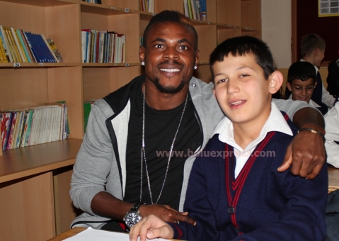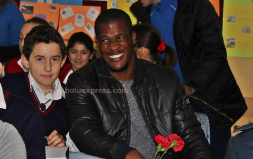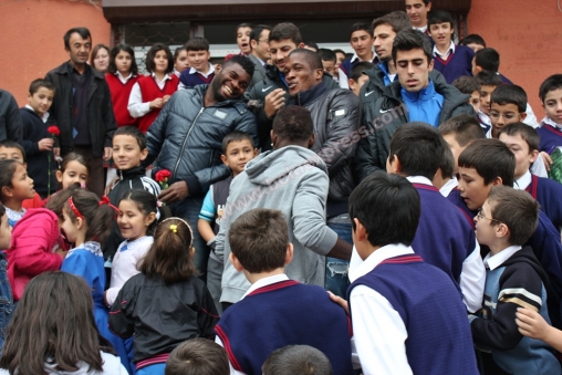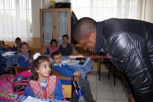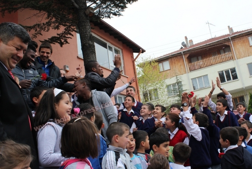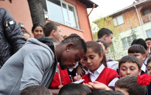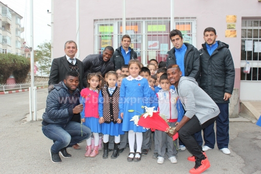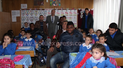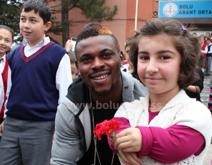 Bolusporlu futbolcuları okullarında gördükleri için mutluluklarını dile getiren minikler, özellikle siyahi oyuncularla fotoğraf çektirebilmek için birbirleriyle yarıştı.