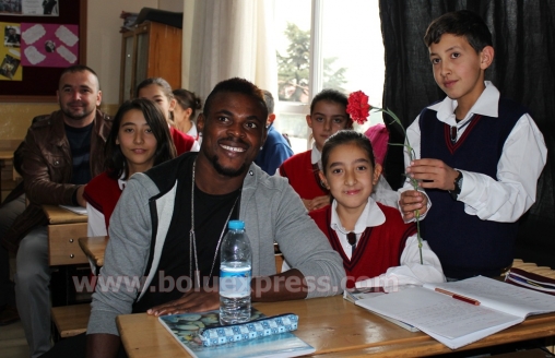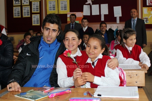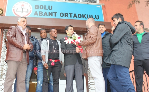 Bolusporlu futbolcular Djiehoua, Agbetu, Kıngsley, Hakan Arslan, Emre Taşkoparan, Cemil ve yöneticiler Sefa Meral, İlker Aktaş ile Menajer Muharrem Demirel, 24 Kasım Öğretmenler günü dolayısıyla Abant İlkokulu ve Ortaokulu öğrenci ve öğretmenlerini ziyaret etti. Bugün saat 09.30’da gerçekleşen ziyarette, öğrencilerin sevgi gösterisi ve tezahüratları ile karşılanan futbolcu ve yöneticiler Urfa deplasmanı öncesi moral buldu. Tüm sınıfları tek tek gezen futbolcular, miniklerle beraber sıralara oturarak çocukluk günlerine döndü.