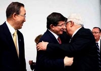 Dışişleri Bakanı Ahmet Davutoğlu, oylama öncesinde BM kürsüsünde tarihi bir konuşma yaptı. BM'ye tarihi bir hatayı düzeltmek için geldiklerini kaydeden Davutoğlu, "Filistin, geleceğine sahip çıkmak için mücadele ediyor. Filistin tam üye olana kadar adalet yerini bulmayacak. Filistin'in statüsünün yükseltilmesi barış sürecinin önünü açar. Filistin bugün olmayacak da ne zaman üye olacak, biz Gazze'den Batı Şeria'ya Filistin'in yanındayız. Filistin devleti gölgeden çıkmalı ve güneşin altında hak ettiği yeri almalı" dedi.