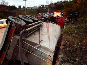 Edinilen bilgiye göre, Mudurnu'dan Akyazı istikametine giden Halil Aktaş (33) idaresindeki 14 AL 750 plakalı kamyon aşırı hız nedeniyle virajı alamayarak devrildi. Yol kenarına devrilen kamyon sürüklenerek taş bankete çarptı. Şoför mahaline sıkışan Aktaş'ı kurtarmak için Adapazarı Büyükşehir Belediyesi itfaiye ekipleri seferber oldu. Yaklaşık bir saatlik çalışma sonucu Aktaş sıkıştığı yerden kurtarılarak ambulansla Akyazı Devlet Hastanesi'ne kaldırıldı. Yapılan ilk müdahalenin ardından sürücü Aktaş, Toyotasa Travmatoloji ve İlkyardım Hastanesi'ne sevk edildi.